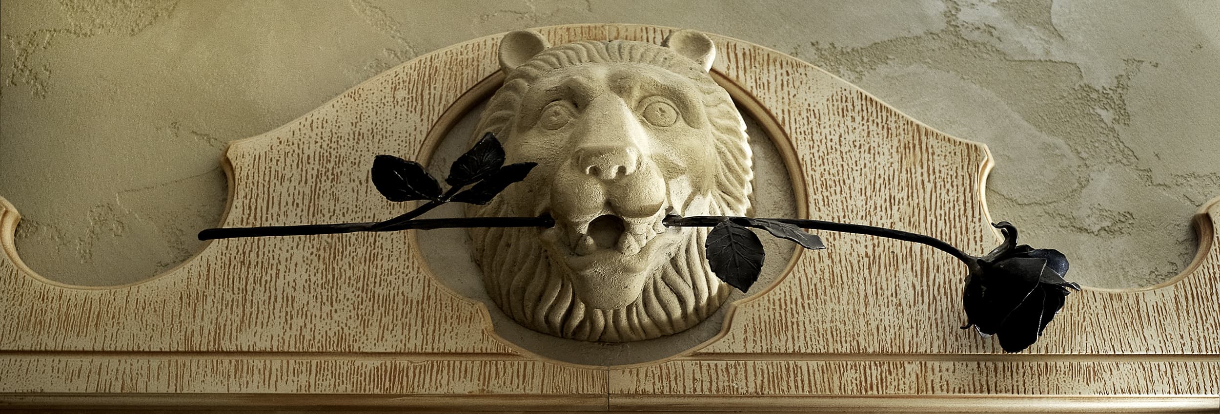 Иногда работа над проектом начинается буквально с безделицы, каприза заказчика. В этом проекте нас попросили вписать в дизайн интерьера квартиры кованый цветок, который хотел видеть в своем интерьере хозяин дома. Так над входной дверью появился барельеф льва с розой в зубах. Поскольку лев должен был быть не злым, а добрым и немного сказочным, то в качестве материала для его исполнения мы выбрали шамотную глину. Этот материал живой и харизматичный, обладающий из-за своей специфической структуры личностными качествами.